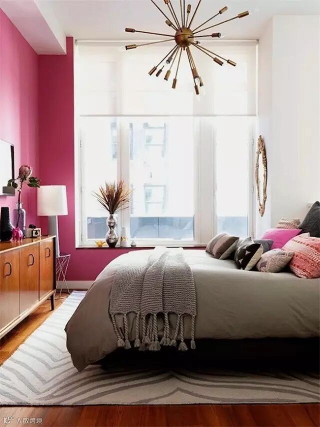 觉得家里装修风格色调太冷?不如加些淡桃色,简单的卧室配上甜蜜的色彩,立马就显的更有生气,更温馨了。