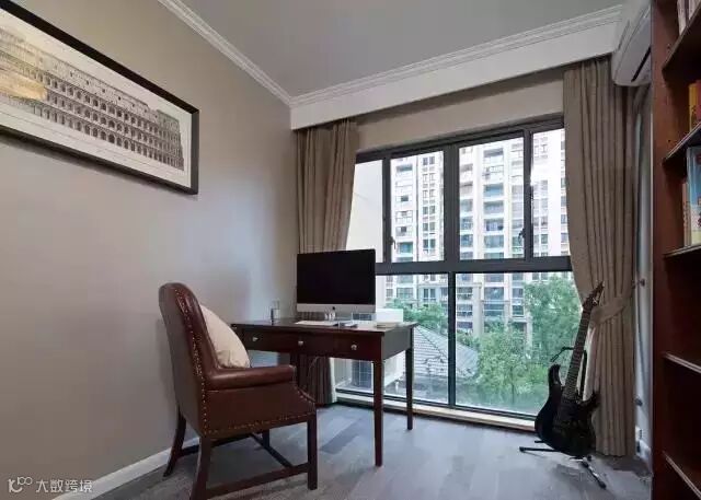▲ 简单素雅的书房,给人心灵沉静的感觉。大大的落地窗带来充足的阳光,在这里看书一定特别舒服。一把吉他放在角落,心情好的时候,站在落地窗前来一曲,有点酷酷的呢~
