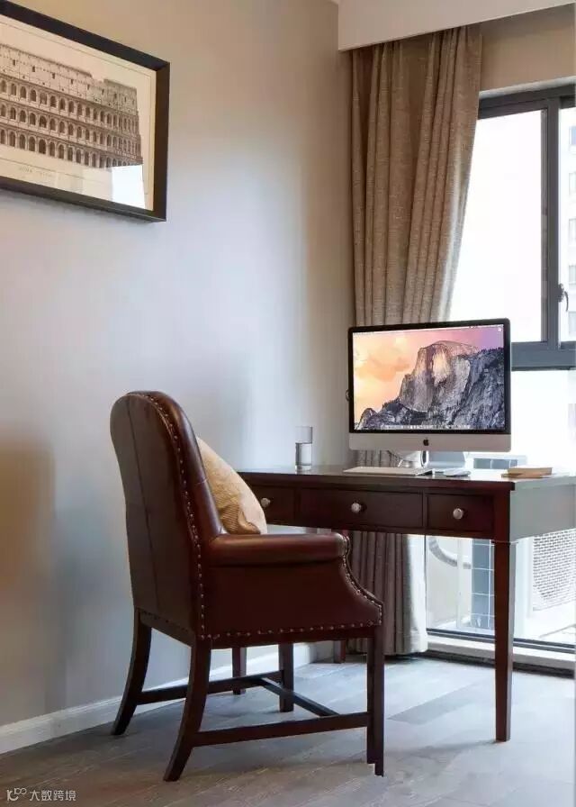 ▲ 独特的美式桌椅可以随意摆放在书房的任何地方,灵活性非常高。怎么摆放完全看主人的心情。
