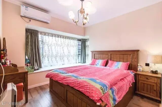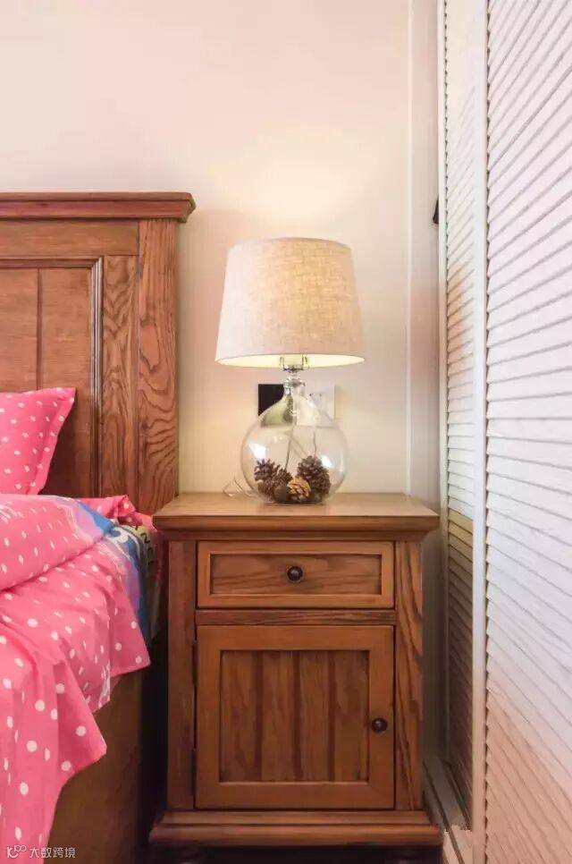 ▲卧室美式家具给予稳重感,墙面采用温润的色调,营造舒适睡眠环境。衣柜移门的设计,卧室的面积合理利用起来。