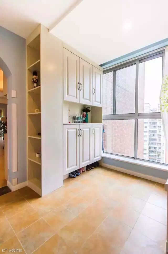 ▲入户花园作为玄关区,设计了鞋柜和置物柜,实用第一位,后期也可以增加饰品来点缀。靠近窗户的位置,摆放一些绿色植物,为家里增添色彩。