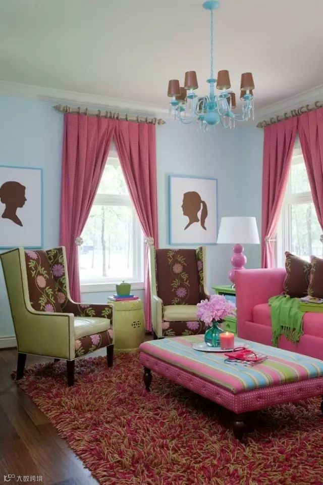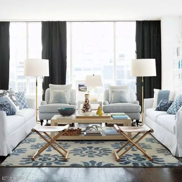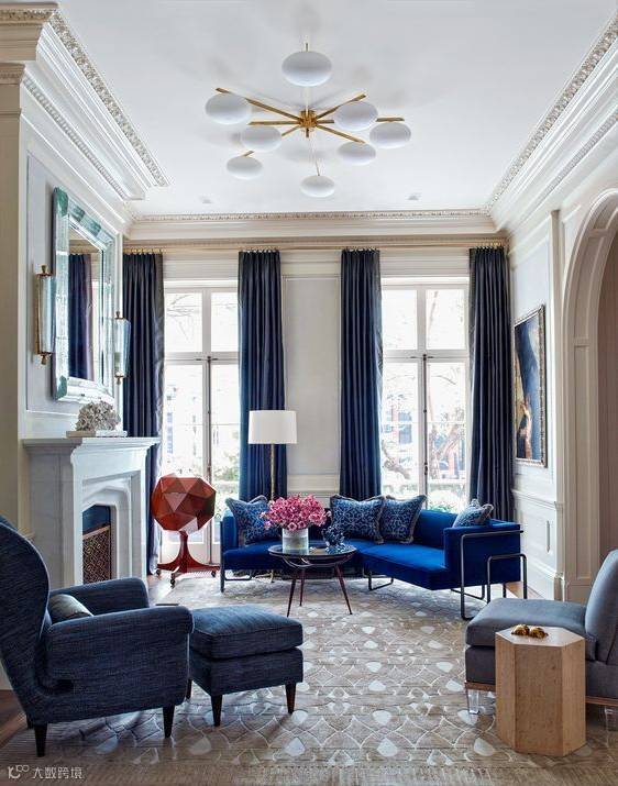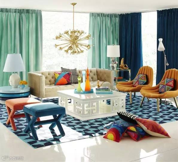 经典又时尚的对比色,让窗帘从客厅里跳出来,而不是被“吃”掉。