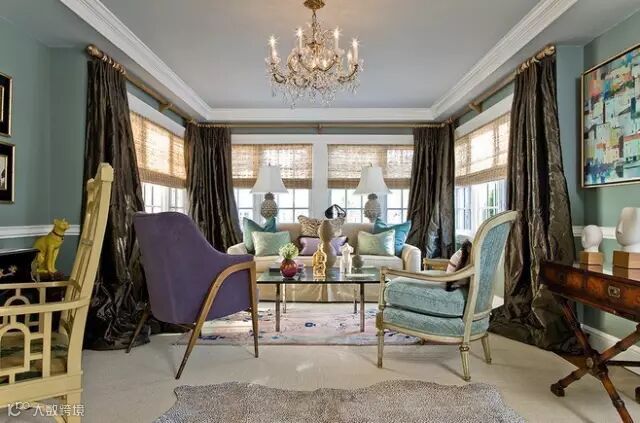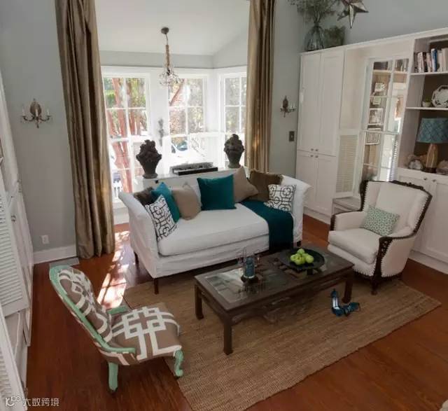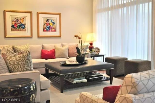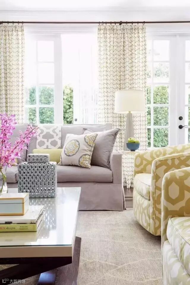 窗帘花色与客厅的沙发、单人椅或是沙发上的抱枕相同,看似漫不经心,却处处透着精心的设计。
