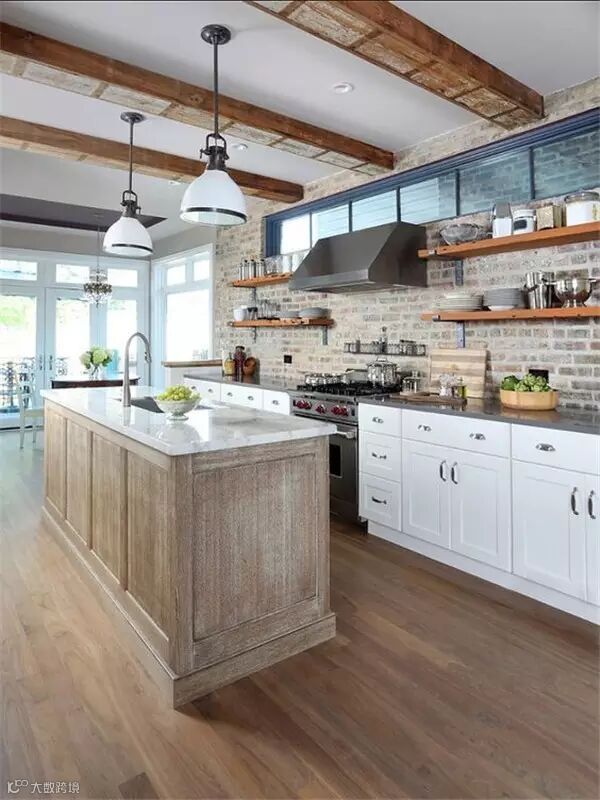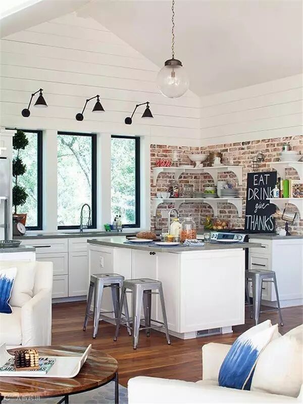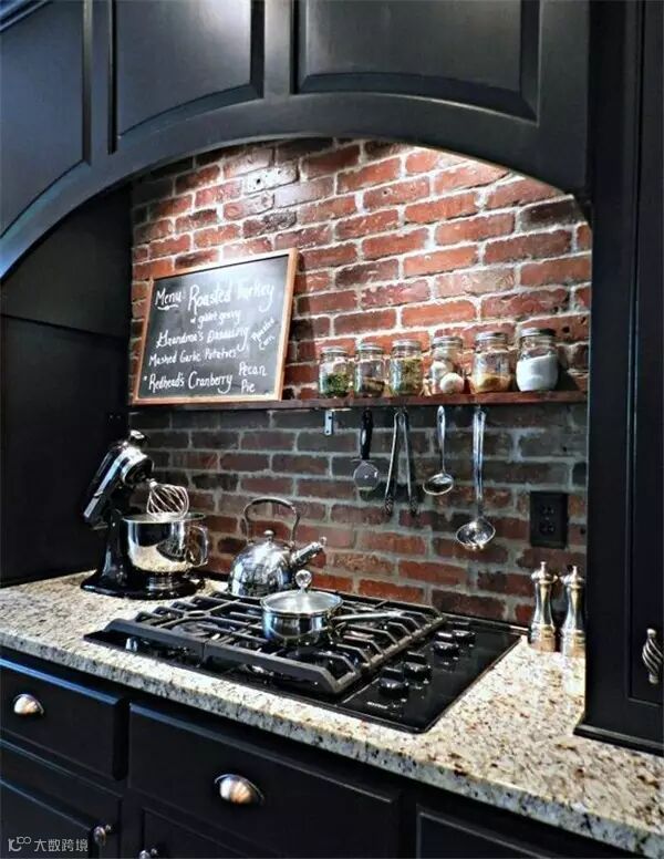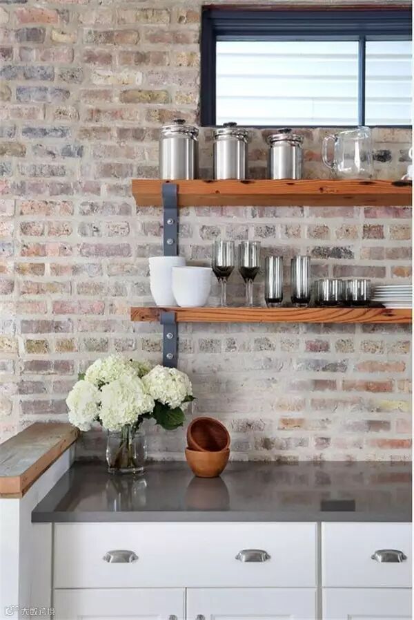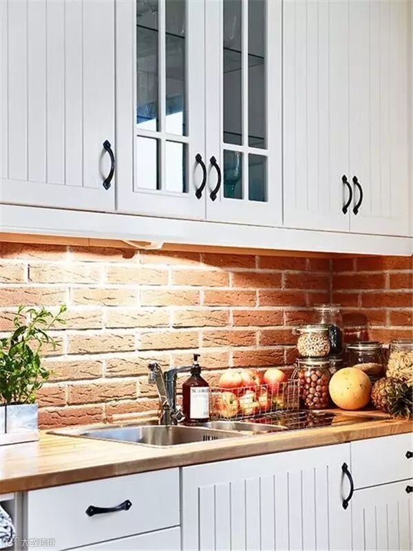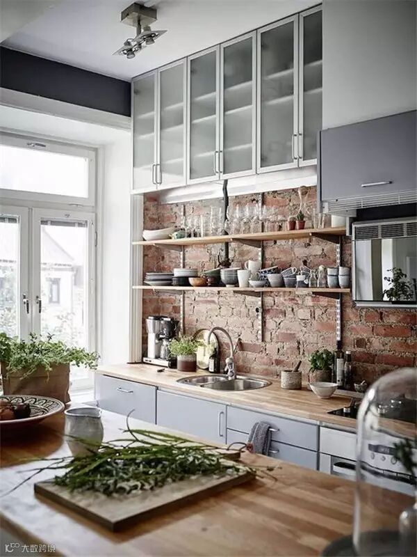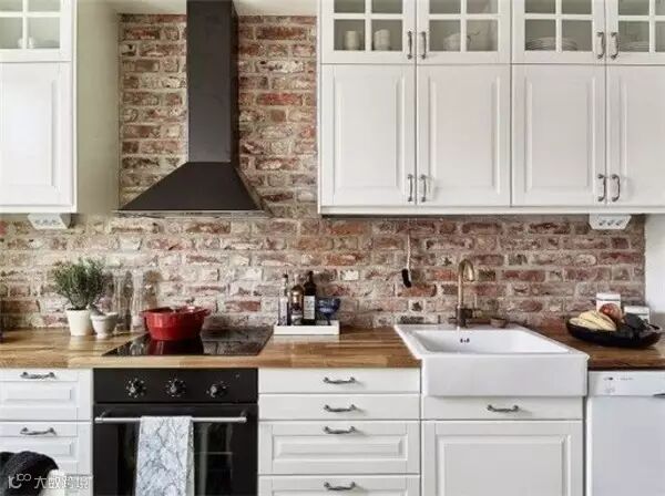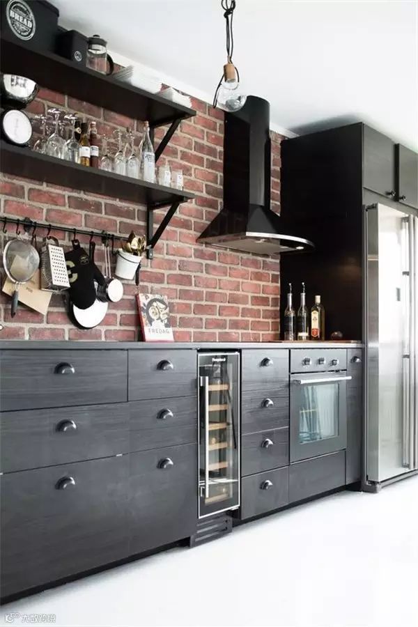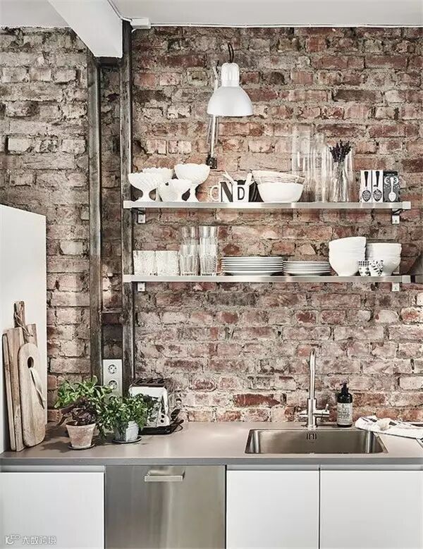 砖墙独特的纹理和粗糙的质感,受到很多年轻人喜欢,纷纷表示砖墙这么美,非要刷白干嘛!很多人在装修时会特意留一面粗犷的砖墙,让室内家装弥漫着一股工业风。如果你也想跃跃一试,但又怕最后难以接受,不如先从小范围开始吧,譬如你家厨房。