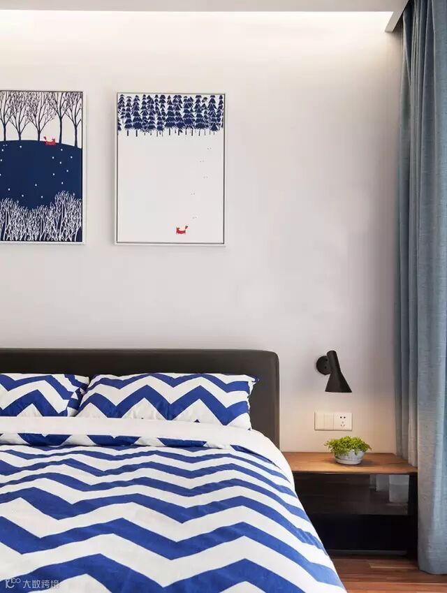 ➫这款就是原木色与黄蓝色搭配为主的手法,装饰的空间色彩相对亮丽,不会觉得压抑沉闷。