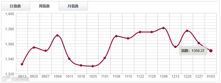 年终岁末,国内红木市场也逐渐走进了年度周期性低谷行情当中。根据中国木材价格指数网监测数据显示,本周红木分类指数报1350.37点,周环比下跌10.14点,跌幅0.75%。其中周销量开始走出下滑趋势,较前一周下滑了5.29%,交易额萎缩2.02%。
