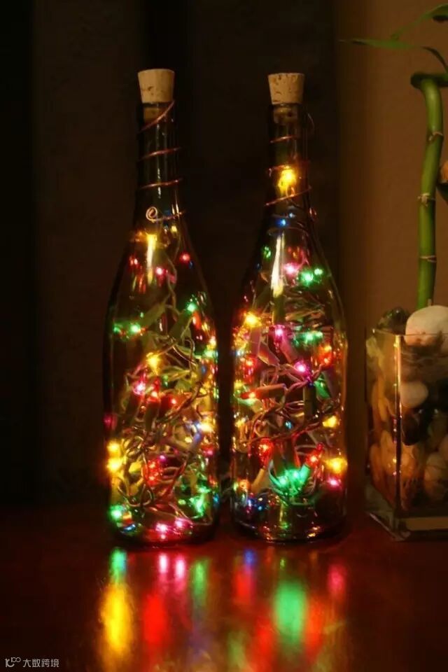 烛光晚餐一定要点传统的蜡烛吗?用两个葡萄酒瓶,在里面放入灯泡,就可以营造出很不一样的浪漫感觉啰