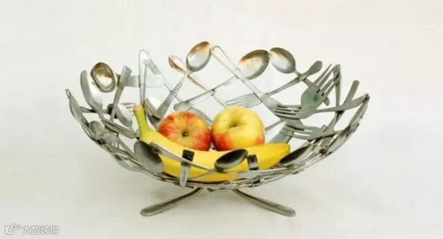 我们通常都会用叉子吃水果,偶尔也会用汤匙来辅助,这是饭后悠闲的水果时间。然而,你想过用这些餐具来编成一个专门用来放水果的篮子吗?