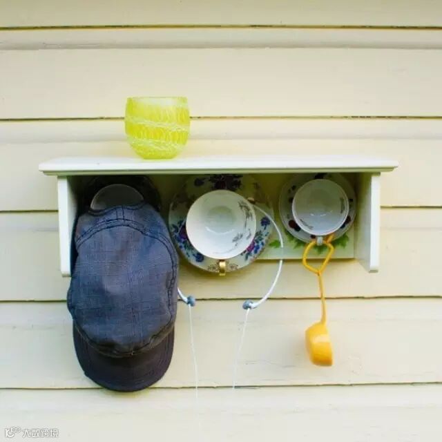 有没有想过,把杯子的握把拿来当挂勾呢?将茶杯牢牢固定在墙上,就可以让这些旧茶杯发挥他的新功能啰!