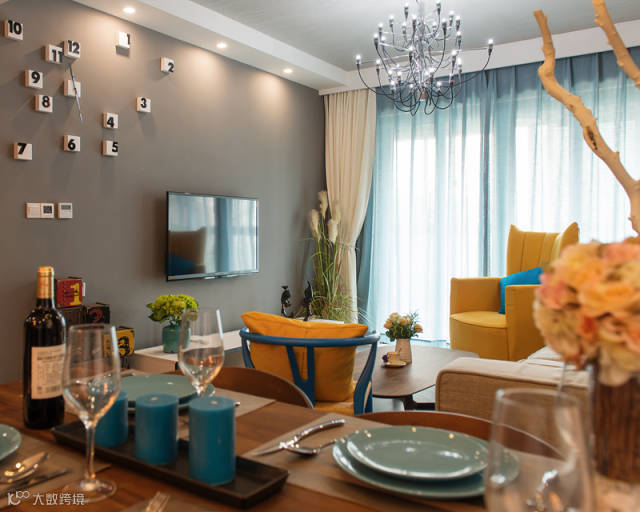 卡娜迪木业集团本案是一个80多平的住宅项目,原本进门为一个封闭的厨房区域餐厅是先放置冰箱的地方,设计师大刀阔斧的把进门所有的墙体整体拆除,做成开放式的厨房,使得空间得以释放,在餐厅北侧还设计进去一个鞋柜和一个小巧的吧台,业主对设计师提的要求是简约不简单想做出一套跟别人家不一样的设计。所以客厅在整体灰色的背景色下加入了很多跳跃的色彩,个性的灯具,大胆的装饰画还有丰富精致的软装摆件营造出与众不同的整体感。