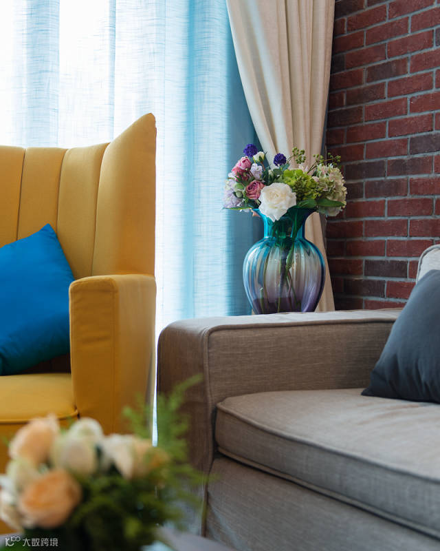 本案是一个80多平的住宅项目,原本进门为一个封闭的厨房区域餐厅是先放置冰箱的地方,设计师大刀阔斧的把进门所有的墙体整体拆除,做成开放式的厨房,使得空间得以释放,在餐厅北侧还设计进去一个鞋柜和一个小巧的吧台,业主对设计师提的要求是简约不简单想做出一套跟别人家不一样的设计。所以客厅在整体灰色的背景色下加入了很多跳跃的色彩,个性的灯具,大胆的装饰画还有丰富精致的软装摆件营造出与众不同的整体感。