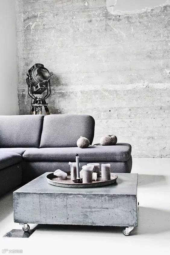 水泥的天然斑驳,有着特别的肌理质感即使满室水泥墙,也不显单调