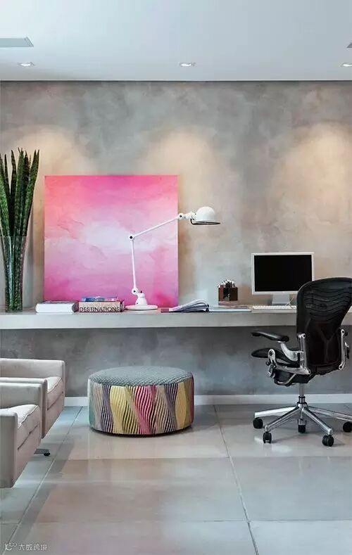 水泥没有复杂的颜色,安神定心还可将水泥直接浇筑成家具使书房别有一番韵味