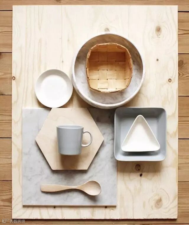 这种灰白、原木色与纯净的白色陶瓷的搭配给人一种简约清雅之美,与日系简约风有异曲同工之妙。
