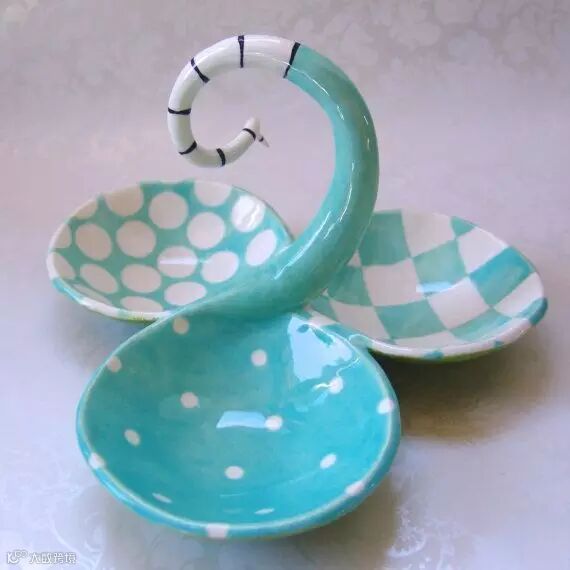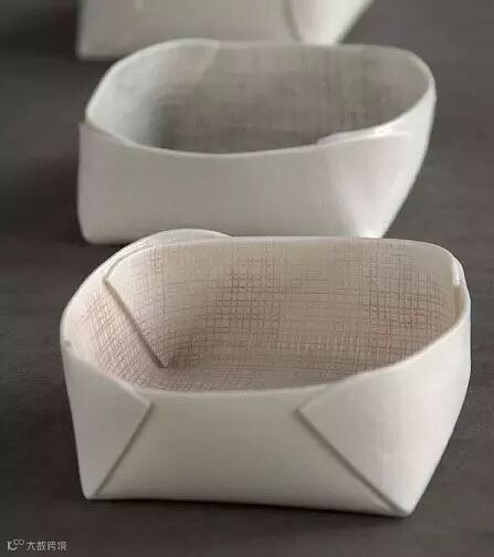 这款是仿照纸折小托盘的纹理,实则为陶瓷小盛器,可盛放花生、瓜子等小零食。