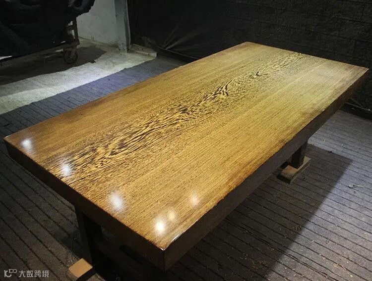 如果你有红木情节,那么鸡翅木大板将是你的第一选择(废话,大板里面除了鸡翅木还有别的红木吗)。鸡翅木,鸡翅木的学名叫非洲崖豆木,拉丁名:Millettia laurentii。与其他材种不同,鸡翅木是5属8类29种国标红木之一,因其弦切面上有鸡翅的花纹而得名“鸡翅木”。鸡翅木带有独特鲜明的花纹,材质光滑细腻,贵气十足。