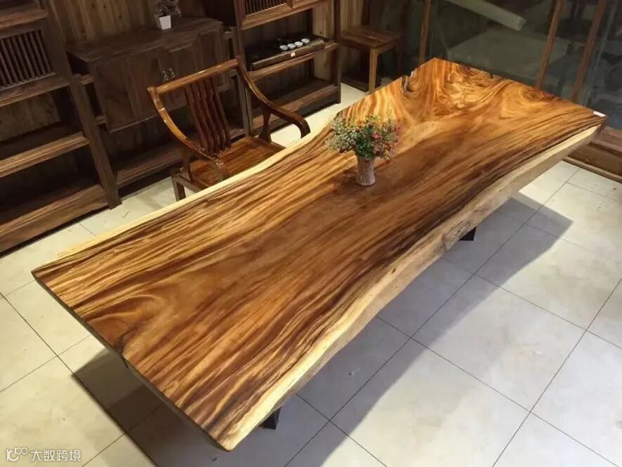 除了红塔利、胡桃木之外,奥坎实木大板的市场人气也是相当高的。奥坎的纹理令人感觉舒适,且奥坎大板木质本身的颜色有很多种可以选择。更重要的是,奥坎的价格相当便宜,2米左右规格的尺寸,价格在2-3千左右,价格低廉,销量上自然首当其位。