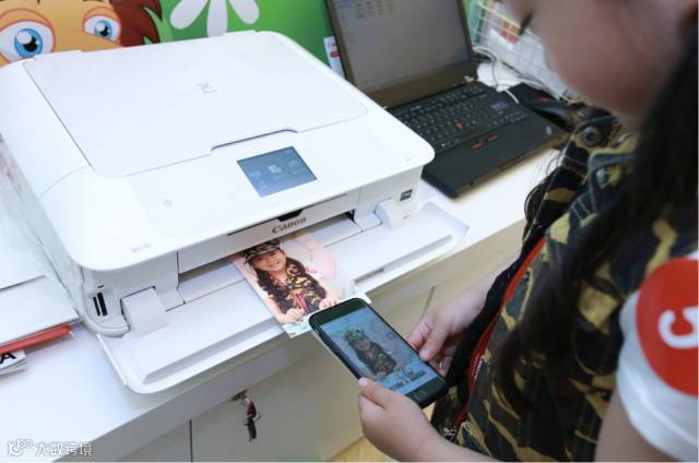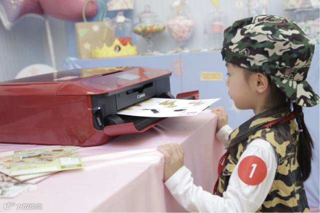 在孩子们聚精会神做手工之余,还拿着妈妈的手机,利用Wi-Fi无线打印功能,把自己美美的照片打印出来。