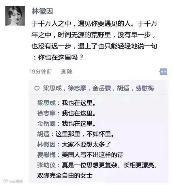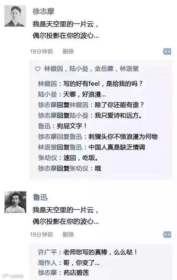 感谢微信 让你我相遇 但你有没有想过 如果民国时期就有了微信 名人的朋友圈会是怎样呢? 不如咱们就大胆想象一下…… ——持严肃史观者谨慎观看哦——