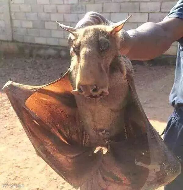 这是喀麦隆的锤头果蝠,价格在当地野味里算是贵的,40美元一只,依然供不应求,居然长了一张角马的脸,不知道它们是否有血缘关系。