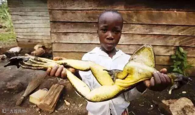 这种黄色的大蛤蟆是在科特迪瓦看到的,当地人抓住以后会主动寻找中国人兜售,想吃到都要提前预定,据说现在是越来越难抓到了。我是不敢吃,只是猜想着他们买到以后会怎么烹饪呢?