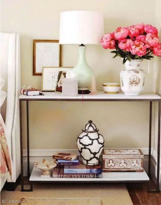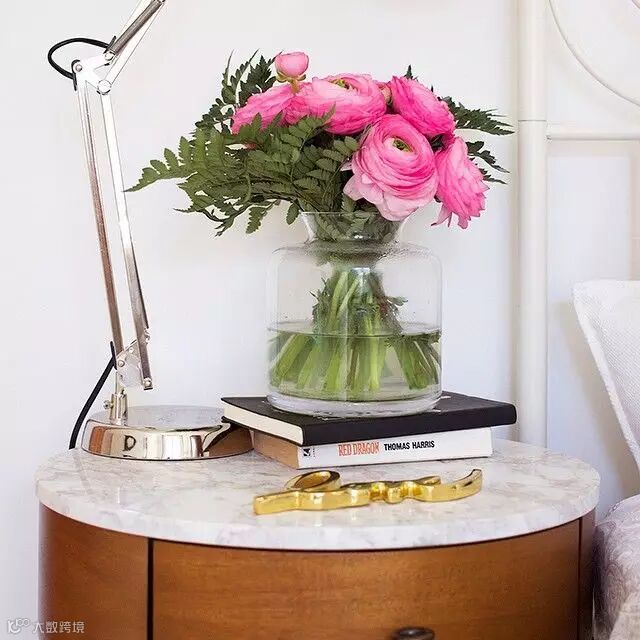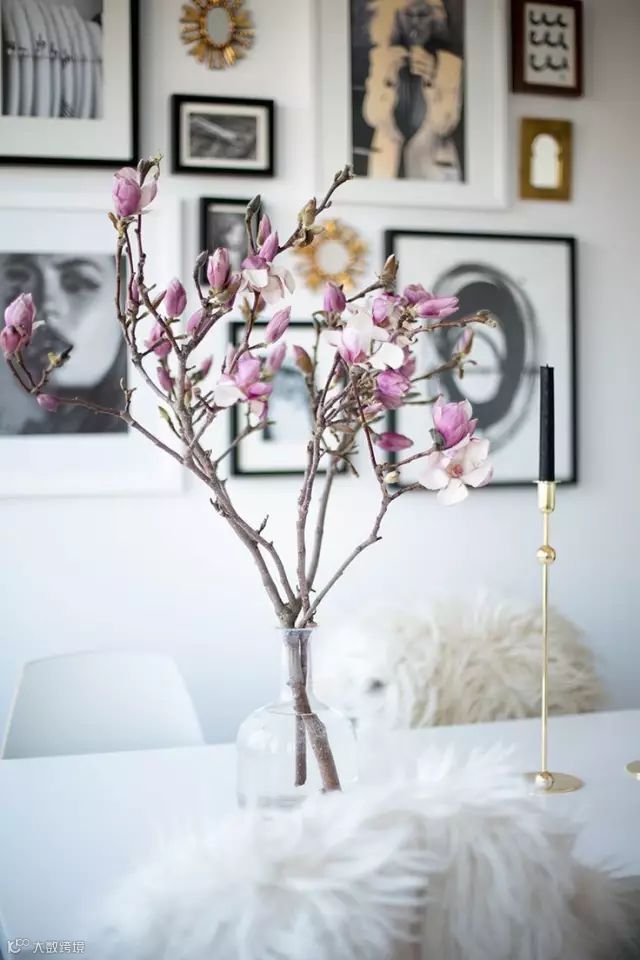 客厅是家庭装饰的重要区域,不要选择太复杂的格料,花材持久性要高一些,不要太脆弱。客厅茶几、边桌边几、电视柜、壁炉等地方都可以设计花艺。在一些大的位置角落,如壁炉、沙发背后也可以设计花艺,但要注意高度,如茶几上的花艺就不宜太高。