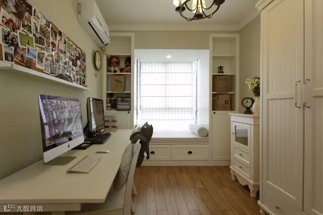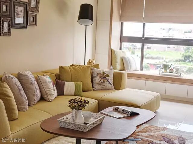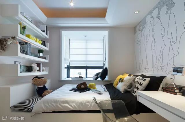 如今不少80、90后年轻人都非常喜欢飘窗设计,这样设计既有利于进行大面积的玻璃采光,又保留了宽敞的窗台,使得室内空间在视觉上得以延伸。