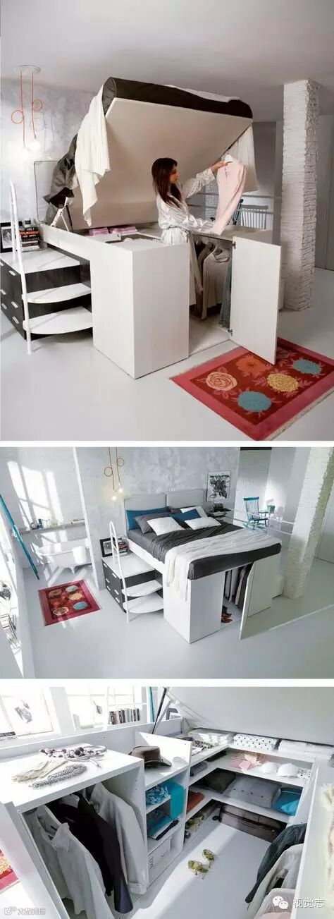 没地方会客?把床做成这样子吧,睡觉起居两不误,顿时觉得空间多了一倍呢~