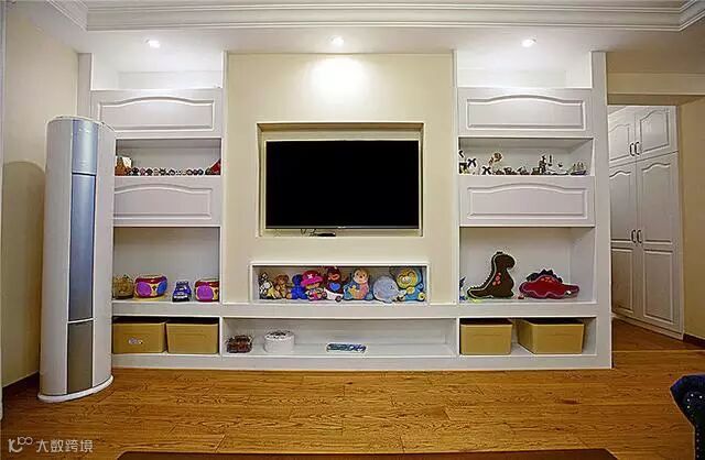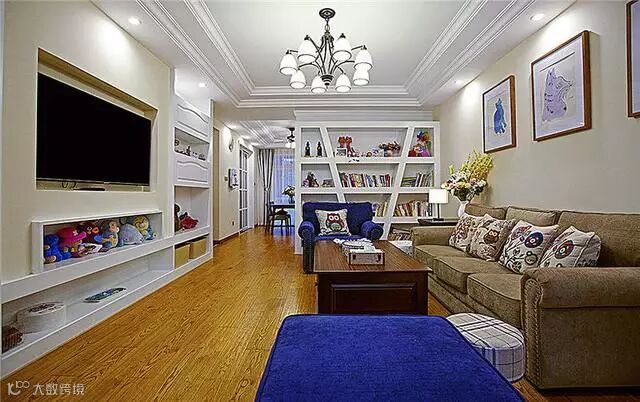 客厅收纳空间无处不在,电视背景墙巧妙利用。