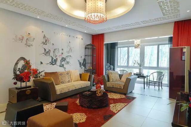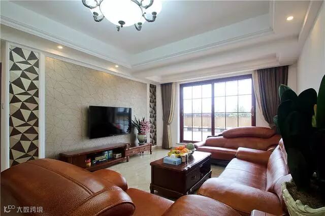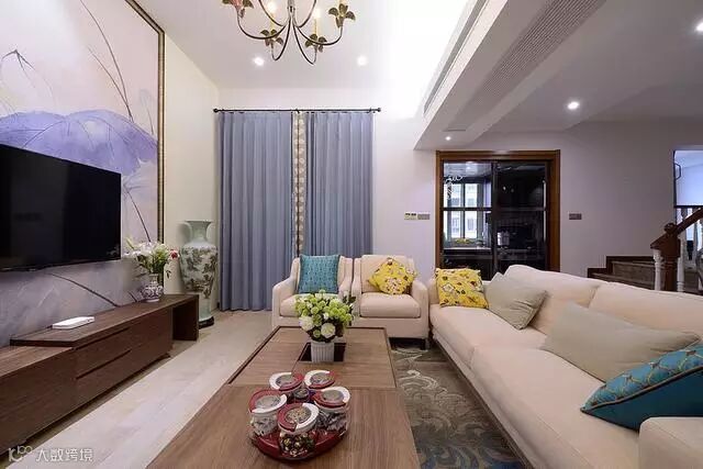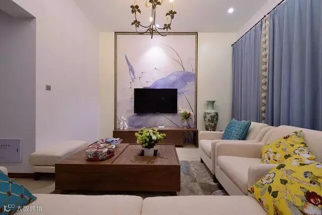 电视背景墙颇具中式风格的悠扬和清逸。