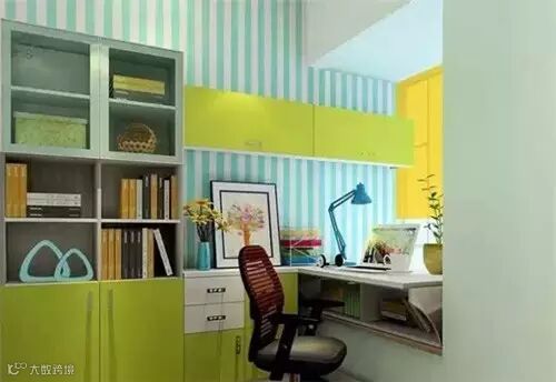 好好开发,变出了一间开放式的休闲小书房呢~进门处圆弧柜的设计还把墙角尖锐的问题解决了。