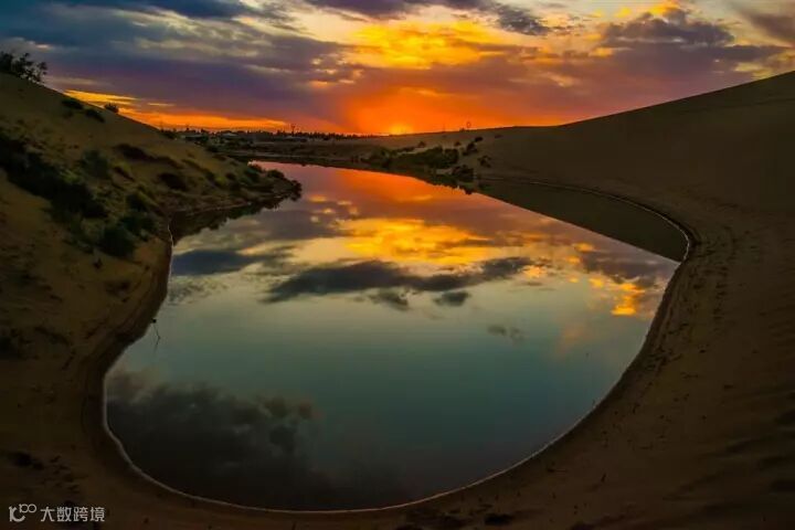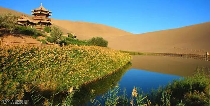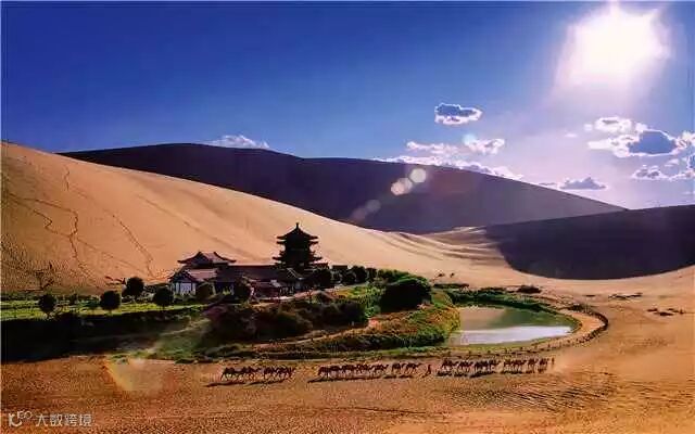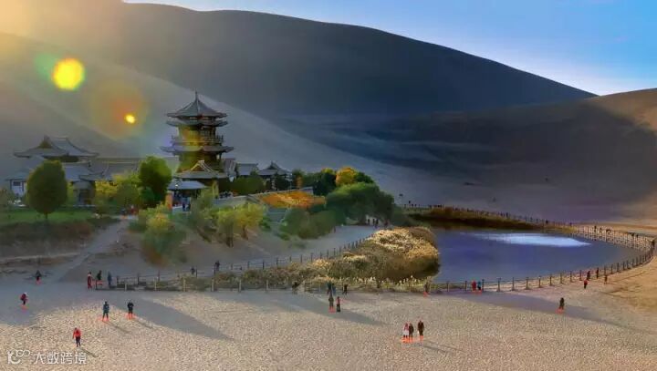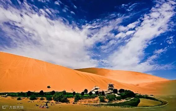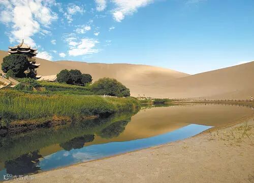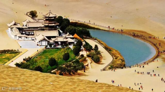 神秘的敦煌月牙泉,像初五的一弯新月,落在黄沙里,泉水清凉澄明,在沙山的怀抱中娴静地躺了几千年,虽常常受到狂风凶沙的袭击,却依然碧波荡漾,水声潺潺,是当之无愧的沙漠第一泉!