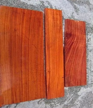 新开料有轻微的酸香气,但刺鼻而不纯正,久则无任何气味,底色变化不一定越来越深,颜色走向难以把握,木材表面光亮度不如老红木。
