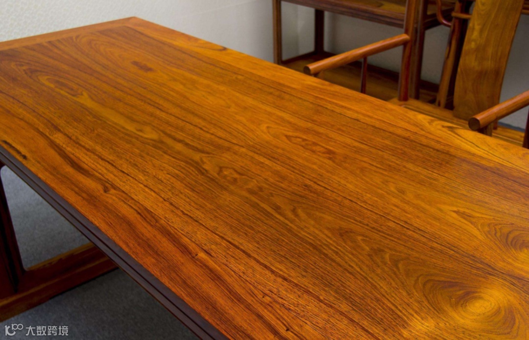 基本无酸香气或极微弱,稍久则无任何气味,底色变化越来越深,越来越醇正,但不会达到交趾黄檀的华贵深色,木材表面光亮度不如老红木。