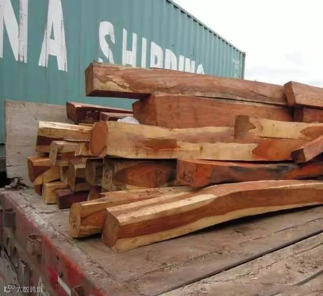 花枝木产量大,底色较红枝浅得多,一般红黄色至酱红色,普遍有黒筋,但黒筋较细,木纹呆板不灵动,绝无老红木那种粗大黒筋的。