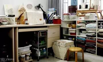 老旧缝纫机披上亲手缝制的新盖布,破旧纸盒包上新的包装纸,在上面写上“小品集”,旧纸盒变成小小的分类收纳盒。