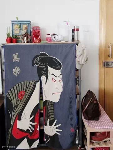 门口的两个鞋架都通过自己缝制的布艺重新装饰,简陋的大鞋架外边加上火车站淘来的和风布帘,矮鞋架铺上细红白格子布,增加浓浓的生活气息。