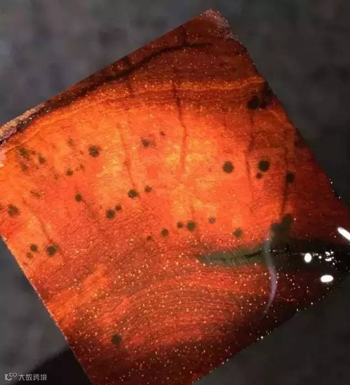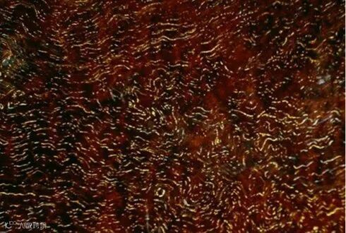 像年轮一样一圈圈的黑筋,是树木生长过程中,由于雨水不足,导致生长缓慢而形成的,而颜色较为均匀部分则是雨水充沛,生长均匀所致。