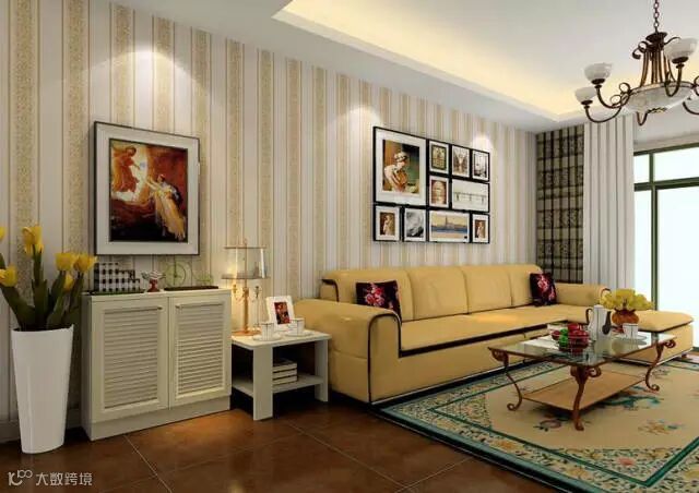 ▲优雅花纹壁纸客厅的简欧风格很相搭,更显典雅。