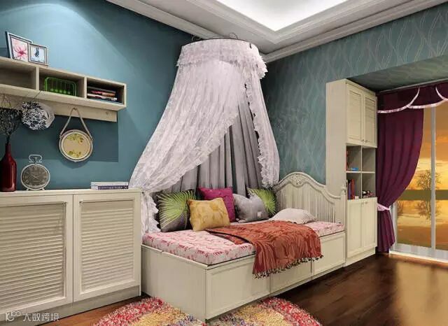 ▲把窗帘换成淡蓝色碎花,和碎花床品搭配十分和谐,挂上帷帐,让整个空间变得更为柔和。