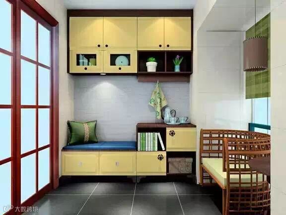 阳台里摆放太多的植物也不好。占用部分的空间做一组柜子,在家里增添一个休闲的去处。