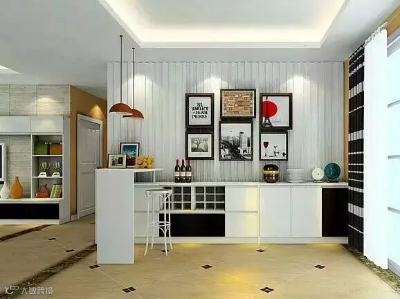 吧台组合柜,巧妙隔断空间,让客厅和餐厅之间的位置不会太空。