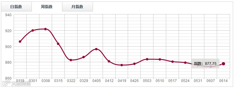 经过长时间的绿盘调整之后,本周人造板指数重回升势,报收877.75点。各大市场当中,鱼珠人造板指数下跌0.21%;福人人造板指数上涨0.39%;大西南人造板指数上涨0.27%;临沂人造板指数上涨0.59%。