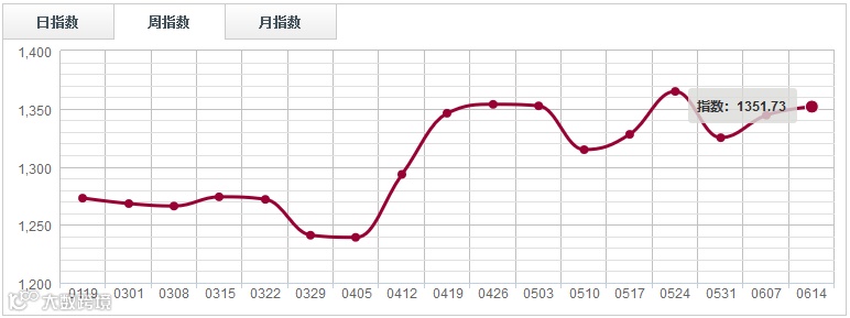 本周红木市场呈现出了放量反弹的小行情,周指数报1351.73点,周环比涨7.35点,涨幅0.55%,全周销量环比增加9.21%,交易额增加9.1%。