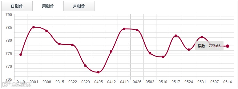 本周锯材分类指数横向整理为主,报收777.65点。其中鱼珠锯材指数上涨0.25%;福人锯材指数收跌1.21%;大西南锯材指数上涨1.78%;南康锯材指数微涨0.04%。