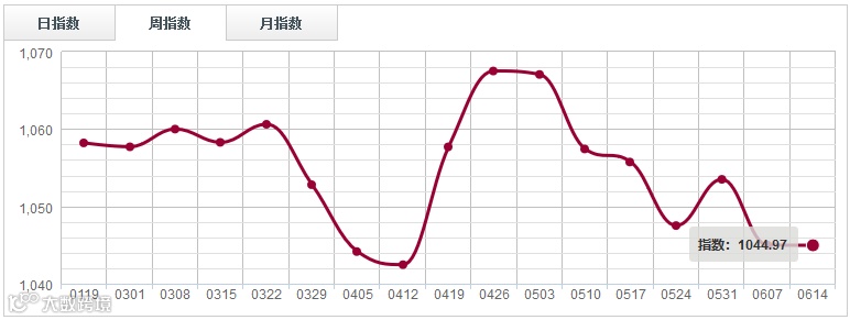 三大市场中,上海福人和四川大西南市场表现相对广东鱼珠市场要强一些,其中上海福人周指数报收1446.34点,环比涨0.2%,周销量连续两周出现上涨,本周销量涨幅为14.68%,交易额增加6.92%;四川大西南本周价格指数报1386.46点,周环比涨5.75%,不过周销量虽然较上周有31.31%增加,但该市场周销量基数较低,因此如此涨幅对大盘也并没有形成很大支撑。广东鱼珠市场本周表现最差,周指数报1224.78点,周环比跌0.33%,全周销量环比下滑1.53%,交易额萎缩0.15%。