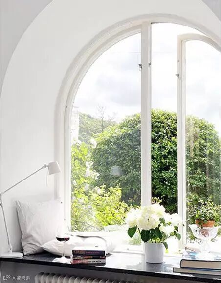 ▲窗台的空间本就不是很大,所以如果下方安装了暖气或者中央空调之类的设备就无法遮掩住,会破坏整体空间美感,所以不妨将窗台面往外延伸出来一点,可以容纳下一人坐卧,这样的飘窗不仅有实用价值,同时还有很不错的视野和光线。