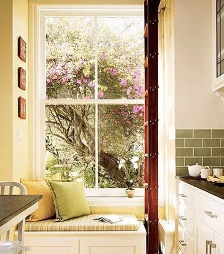 ▲ 厨房中肯定也会有利用不到的小角落,那么不妨学学上图构建一个小飘窗,放上可以收纳的小柜子,这样就很好的将这样一个1㎡的空间利用起来了,在吃饭、烹饪的同时还能有不错的休息看风景空间。