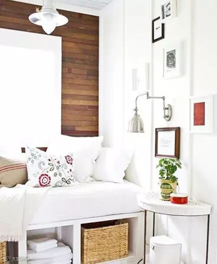 ▲虽然同样是比较小的飘窗空间设计,但是主人明显在设计时将收纳问题考虑进去了,整个飘窗下方就被打造成收纳格的样式,很好的提供了放置杂物的空间。