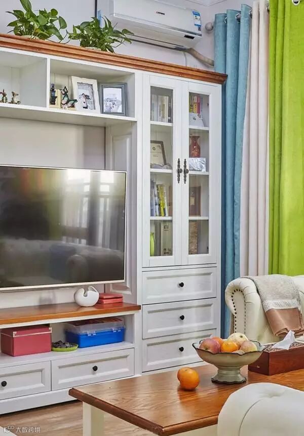 客厅电视背景是一个组合柜,收纳功能强也不失美观。